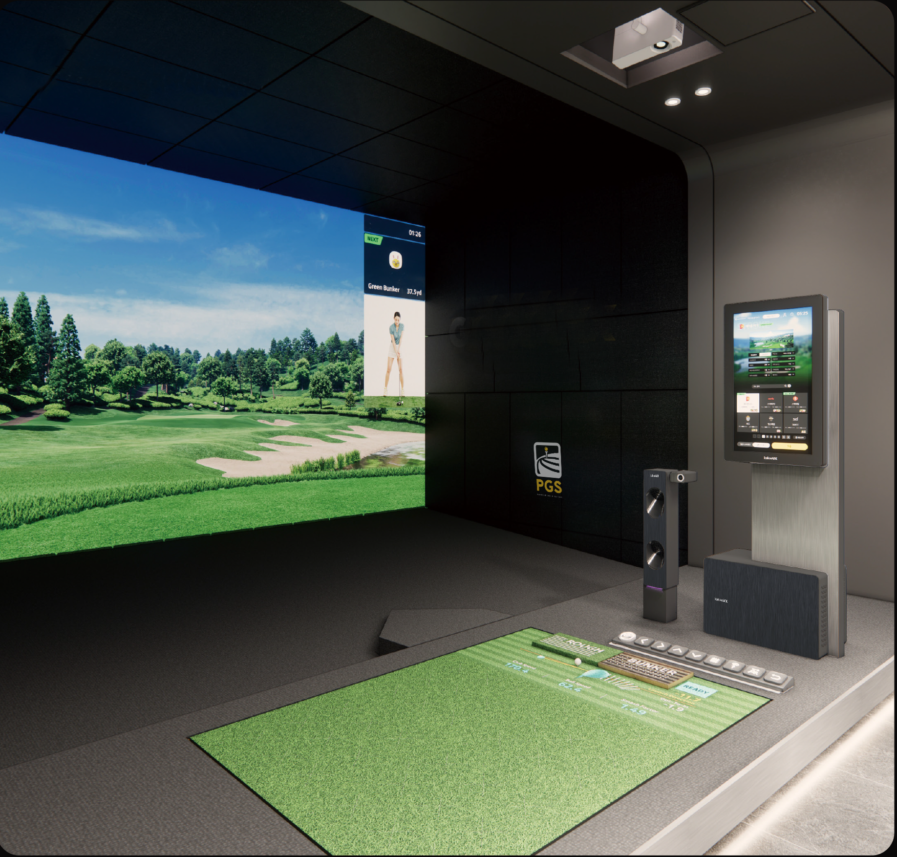 The PGS Quantum powered by Kakao VX is the pinnacle of indoor golf simulation, delivering unmatched realism, precision, and immersion for players, coaches, and venue operators. Engineered with cutting-edge tracking technology and an ultra-responsive software engine, Quantum bridges the gap between real-world golf and the digital environment.